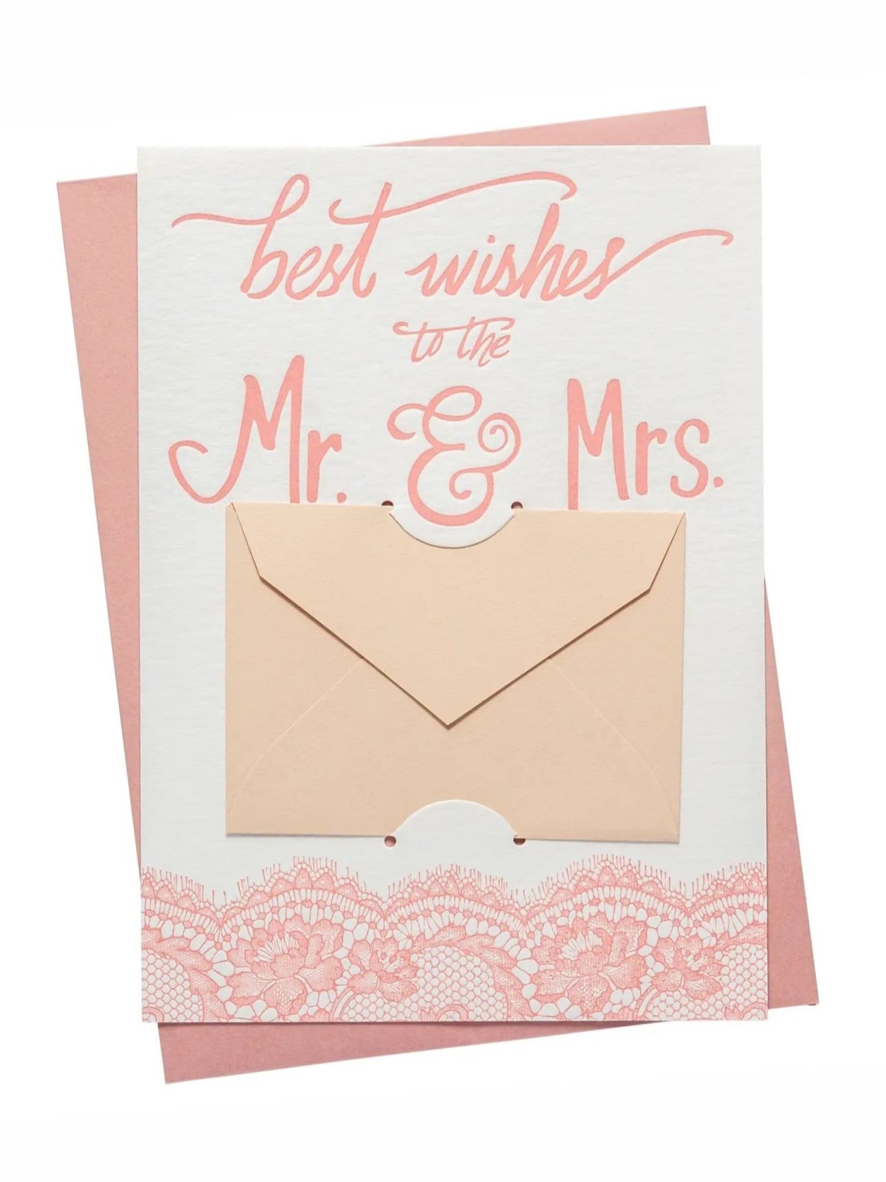 Gift cards are the easiest gift to give and are always well received. Our Gift Card Holders are the perfect way to dress them up! Place your gift card, check, or cash in the tiny envelope, which nestles into the slots on our letterpress card. Remove the tiny envelope to reveal a bonus message underneath! “Best wishes to the Mr. & Mrs." bonus message - “so happy for you!”