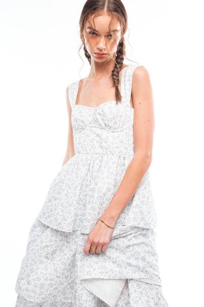 Floral Ruffle Wire Bone Dress