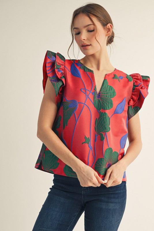 Lotus Ruffle Sleeve Top