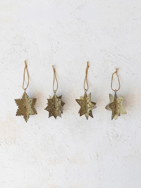 Sold Individually: 4"H Metal 3D Snowflake Ornament w/ Cut-Outs, Antique Gold Finish